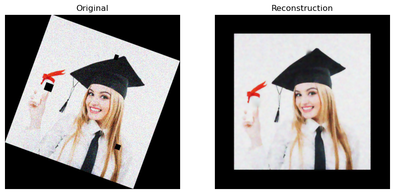 plot_comparison(damaged_image, result, "Reconstruction")/var/folders/gk/g6hht_993hbcv0ffg5wyh8f00000gn/T/ipykernel_5012/3345107847.py:10: FutureWarning: `multichannel` is a deprecated argument name for `denoise_tv_chambolle`. It will be removed in version 1.0. Please use `channel_axis` instead.
