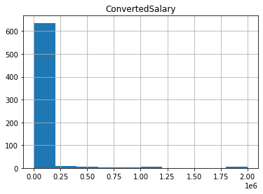 so_numeric_df[['ConvertedSalary']].hist()
