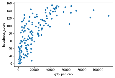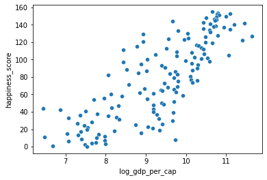 # Scatterplot of log_gdp_per_cap and happiness_score