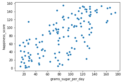 # Scatterplot of grams_sugar_per_day and happiness_score