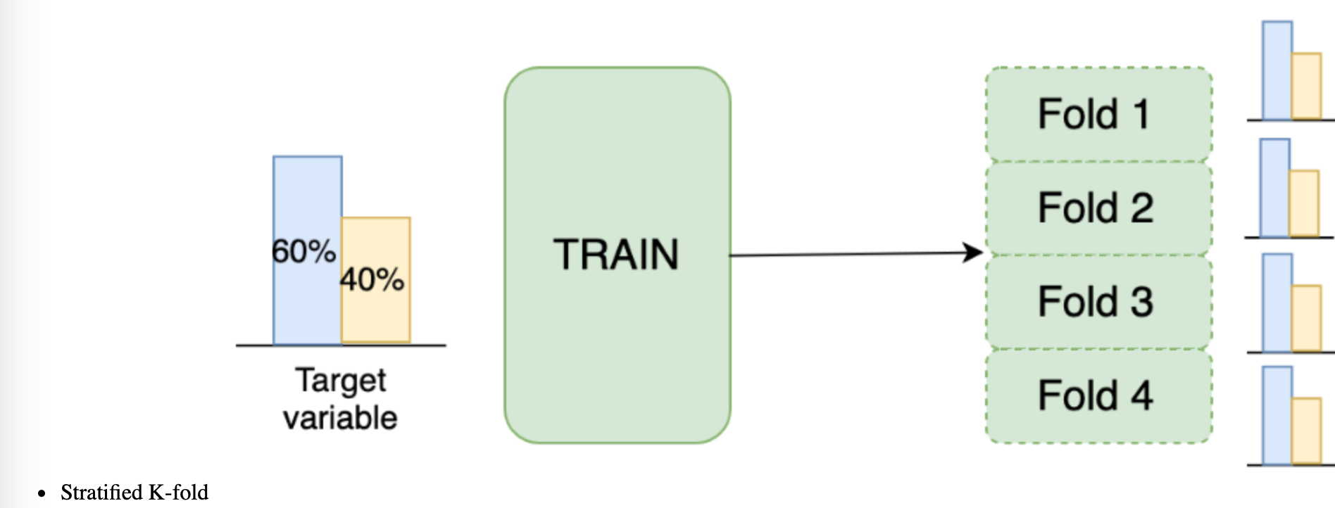 To overcome this, let’s implement the stratified K-fold strategy with the stratification on the target variable.