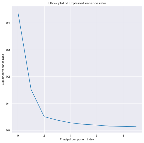 plt.title('Elbow plot of Explained variance ratio');
