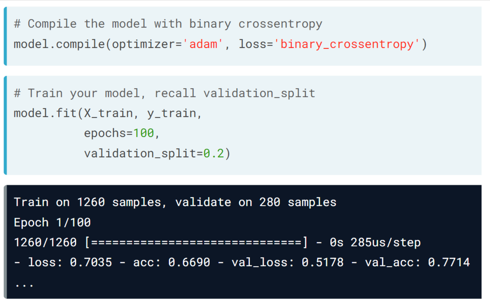 The early stopping callback is useful since it allows for you to stop the model training if it no longer improves after a given number of epochs. To make use of this functionality you need to pass the callback inside a list to the model’s callback parameter in the .fit() method.