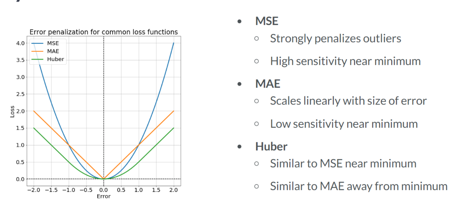 You may have noticed that the MAE was much smaller than the MSE, even though price and predictions were the same. This is because the different loss functions penalize deviations of predictions from price differently. MSE does not like large deviations and punishes them harshly