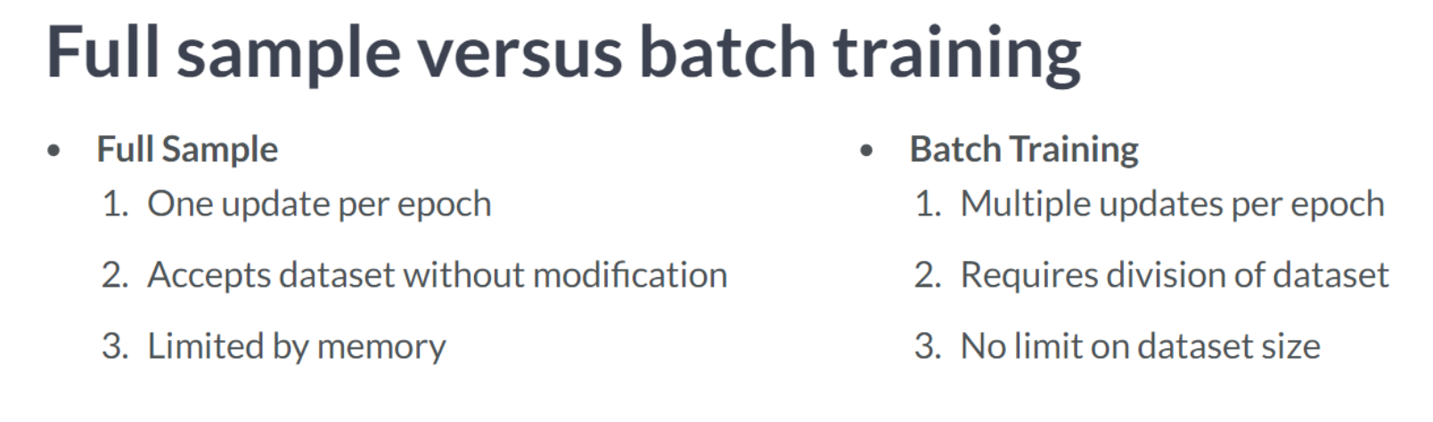Notice that we did not use default argument values for the input data, features and targets. This is because the input data has not been defined in advance. Instead, with batch training, we will load it during the training process