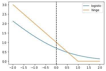 # Mathematical functions for logistic and hinge losses
