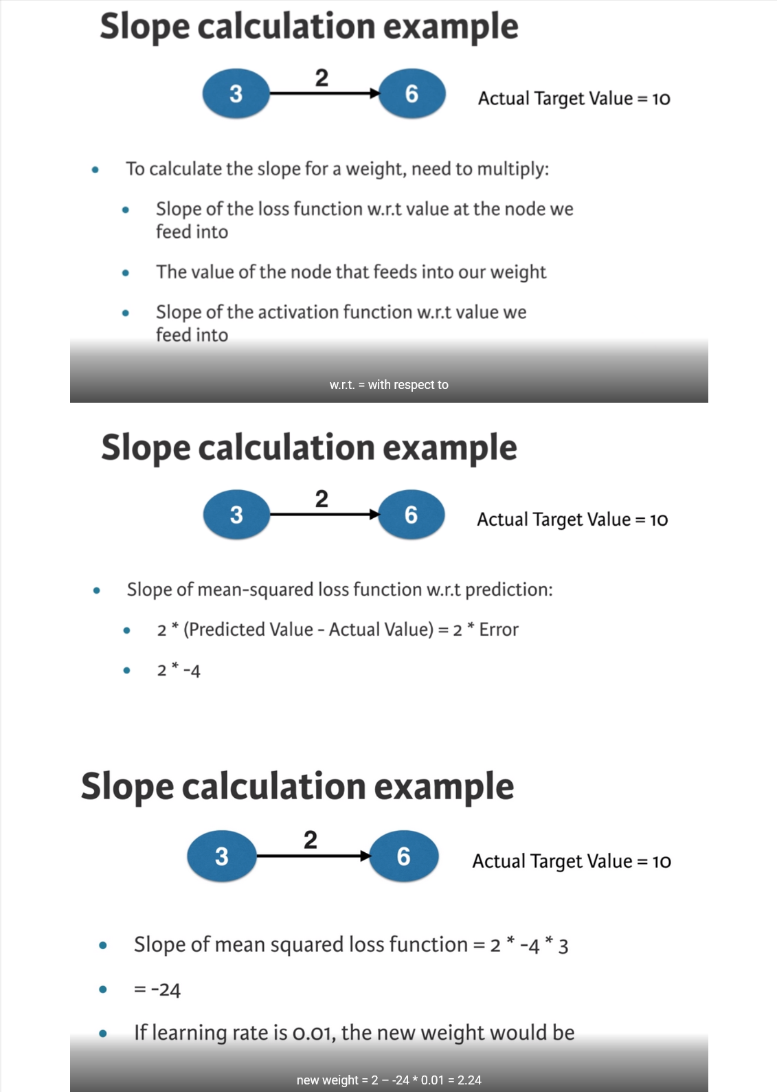 When you add those slopes to your weights, you will move in the right direction. However, it is possible to move too far in that direction. In order to determine if the model is improving, you will want to take a small step first, using a lower learning rate.