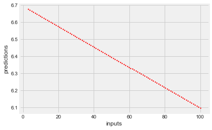 Now that you’ve fit a model with the Boston housing data, lets see what predictions it generates on some new data. You can investigate the underlying relationship that the model has found between inputs and outputs by feeding in a range of numbers as inputs and seeing what the model predicts for each input.