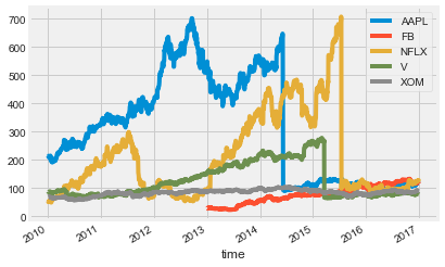 In this exercise, you’ll plot the time series for a number of companies to get an understanding of how they are (or aren’t) related to one another.